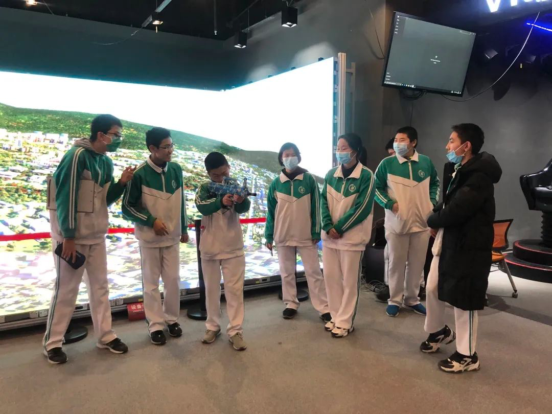 儀式后,在利亞德集團工作人員帶領下,后備人才基地校——首都師范大學附屬中學的30余名師生參觀了利亞德展廳,現場還結合VR工業仿真等進行了科技與教育融合的互動體驗。