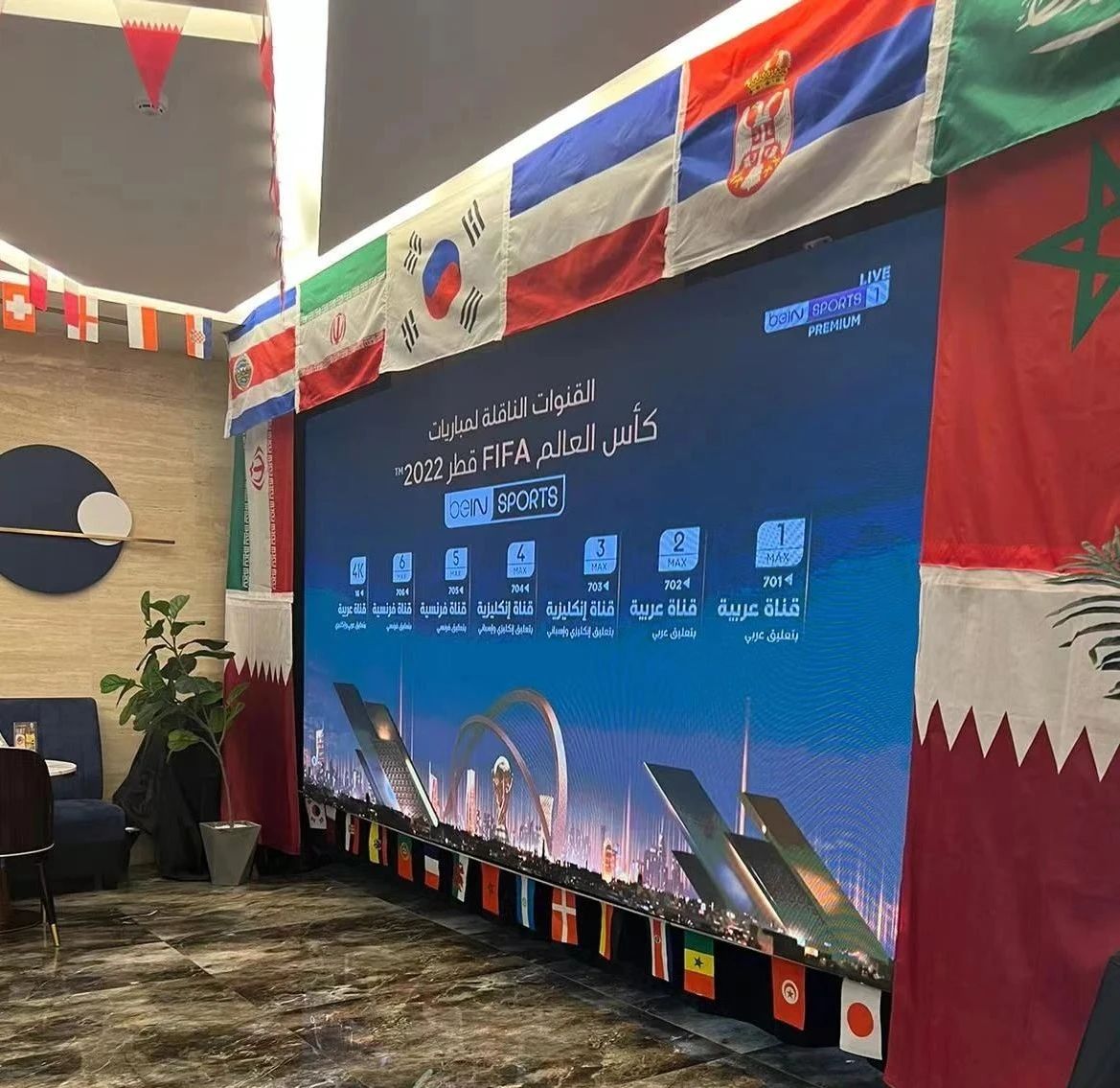 憑借豐富的國際賽事視效服務經驗,利亞德“中國屏”再次閃耀世界舞臺。從體育場到球迷場外觀賽區,從電視臺直播演播室到戶外廣告、酒店、咖啡吧……利亞德1500平米LED顯示屏,滿足全場景需求,全方位服務卡塔爾世界杯。