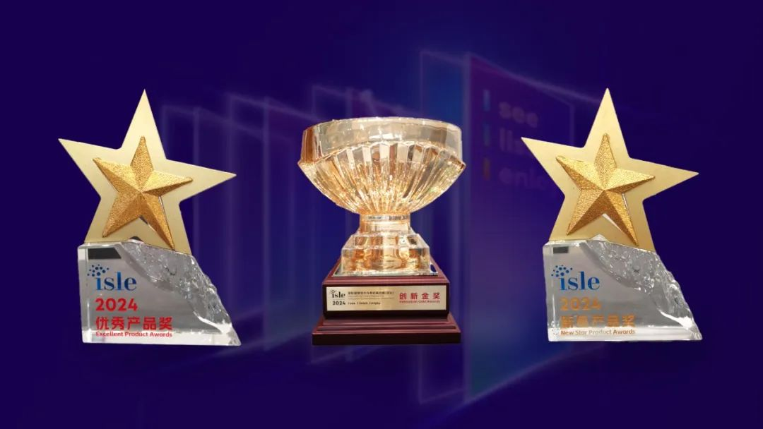 此外,利亞德憑借卓越的產品實力和創新能力榮獲三項大獎,其中利亞德TX PRO系列Mini/Micro LED顯示屏、新一代MG系列、量子點COB智能LED顯示終端分別獲得由ISLE主辦方評選的“ISLE2024 金獎”“優秀產品獎”“新星產品獎”,充分體現了業界對利亞德的高度認可與贊譽。